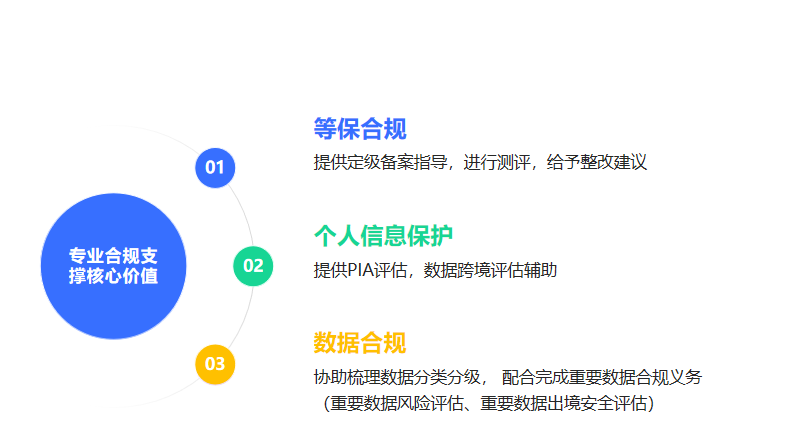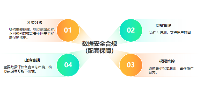 数据合规:协助梳理数据分类分级, 配合完成重要数据合规义务(重要数据风险评估、重要数据出境安全评估)。