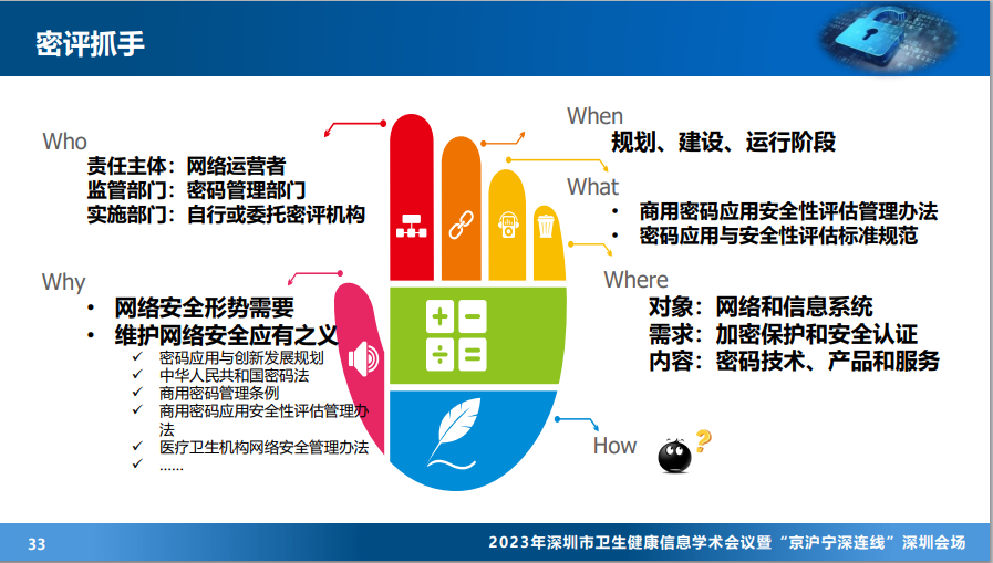 集团旗下核心子公司深圳市网安计算机安全检测技术有限公司(以下简称网安检测公司)总工程师杨宏志博士发表了“商用密码应用安全性评估”的报告,阐述了密码的概念,结合医疗行业典型场景给出了密码应用示例,重点介绍了密评工作及相关标准规范。